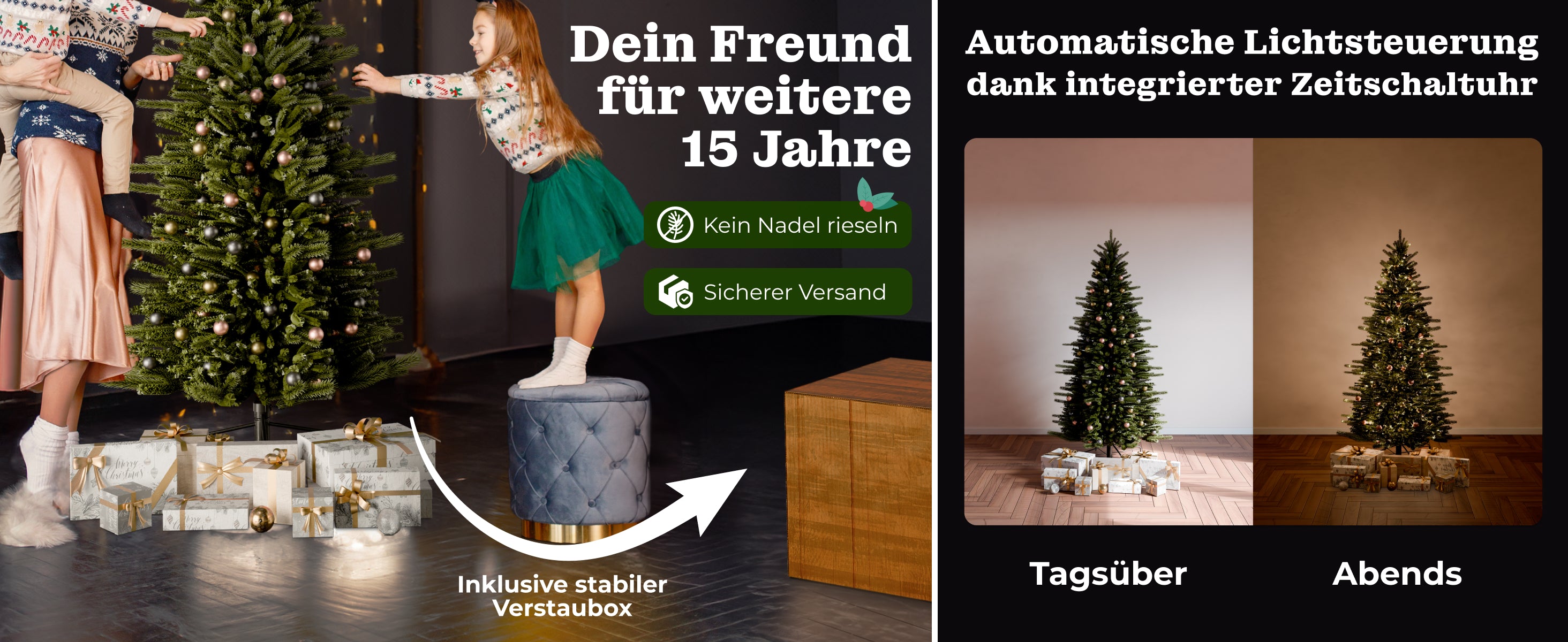 - NACHHALTIG UND QUALITÄTSBEWUSST - Unser Weihnachtsbaum ist ein Begleiter fürs Leben. Mit ihm hast du keine abfallenden Nadeln oder kahlen Stellen im Baum zu befürchten. Genieße Jahr für Jahr einen Baum, der immer wie am ersten Tag aussieht. Unser Weihnachtsbaumständer ist extrem stabil und besteht aus hochwertigen Materialien.